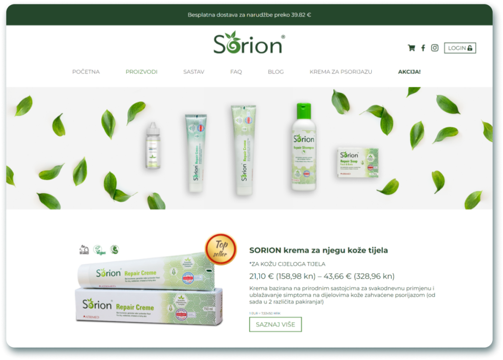 „Krema za psorijazu“ pojam je kojem smo na Google tražilici osigurali prvo mjesto – organski – i time omogućili stalan priljev novih potencijalnih kupaca koji traže upravo temeljni Sorion proizvod, kremu za psorijazu.