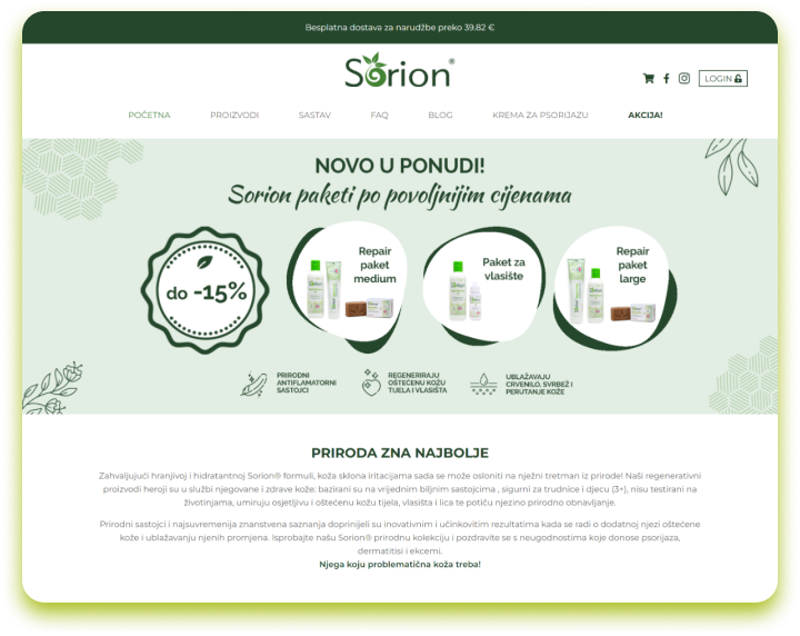 BioMundus je godinama funkcionirao prema tradicionalnom modelu , karakterističnom za ovu djelatnost. Uvođenje web trgovine, odnosno alata za direktnu prodaju krajnjim kupcima, označilo je inovativan zaokret u kontekstu ustaljenog modela rada. Klijent nam je odlučio dati povjerenje s prvim iskoracima u online poslovanju te smo 2019. lansirali prvi Sorion web shop, a nedugo zatim kreirali smo i prvu precizno targetiranu online kampanju – sa “startupovskim” (malim) oglašivačkim budžetom.